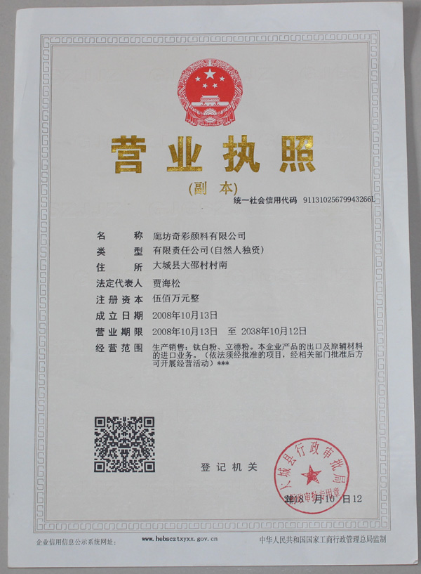 | 備案號(hào):冀ICP備08000328號(hào)-7 版權(quán)所有:廊坊奇彩顏料有限公司 電話:0316-2834666 地址:河北省廊坊市大城縣里坦工業(yè)園區(qū) |